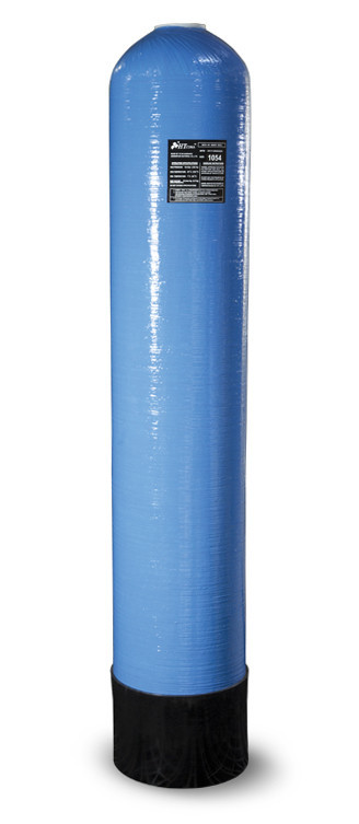 Балони для фільтрів типорозміру 08х35 виготовлені з високоякісних композитних матеріалів за технологією ниткового намотування (термопластичний поліестер, поліетилен високого тиску). Усі корпуси фільтрів на 100% стійкі до корозії, товщина стінки корпусу фільтра від 3,8 мм до 7 мм (залежно від діаметра). Максимальний робочий тиск — 10 барів, робоча температура — 2-93 °C, внутрішня різь верхньої частини корпусу засипного фільтра — 2 1/2" Ст.волок. корпус, синій, верх. Різь 2 1/2", з основою, місткість 27 л, обсяг завантаження 20 л Балони для фільтрів сумісні з усіма керівними системами (Clack, RunXin) і можуть бути використані для широкого спектра комерційного та промислового застосувань. Мала вага мінеральних баків полегшує транспортування і монтаж фільтрів. Немає потреби в фарбуванні обладнання та внутрішньому обробленні. Цей вид корпусів прийшов на зміну старим, виготовленим із металу, а завдяки автоматичному клапану керування сучасні балони стали ще й меншими за габаритними розмірами, порівнюючи зі старими побратими. Сучасні корпуси фільтрів виготовлені з поліпропілену й армовані зовні склопластикової нитки просоченої епоксидною смолою. За технічними характеристиками склопластиковий корпус фільтра становить, а в деяких випадках перевершує сталеві корпуси. Наприклад, пластиковий балон може витримувати тиск води 48 атмосфери, а якщо виготовлені за спеціалізованим замовленням, то можуть витримувати тиск і набагато вище. Щодо температури, то ці балони використовуються тільки для холодної води, а точніше до +65 градусів Цельсія. Балони мають кілька основних типорозмірів і найчастіше їх розміри вимірюються в дюймах. В описі розмірів і технічних характеристик корпусу фільтра зазвичай вказують діаметр і висоту. Наприклад: корпус фільтра 13х54, це означає, що його діаметр становить 13 дюймів, а висота балона — 54 дюйми. У разі перерахунку на сантиметри ми множимо величини діаметра та висоти корпусу фільтра на коефіцієнт перерахунку, він становить 25,4. Звідси отримуємо: діаметр балона 13 х 25,4 = 330,2 см, а висота — 54 х 25,4 = 1371,6 см. Як уже зазначено вище, балони фільтрів виготовлені з поліпропілену й армовані зовні склопластиковою ниткою просоченою епоксидною смолою. Поліпропіленовий корпус має у верхній частині, внутрішню різь діаметр якої, залежить від типорозміру балона. Корпуси фільтрів високої продуктивності мають отвір ще й у нижній частині, для технологічних потреб під час заміни наповнювача та якщо необхідне подавання води знизу. Також на деяких моделях є фланцеві, а не нарізні з'єднання. У верхню частину під'єднується керівний клапан, нижня частина балона встановлюється на спеціальну підставку, яка потрібна для стійкості. Всередину корпусу фільтра встановлюють дренажну трубу з розподільним пристроєм (нижній дистриб'ютор) і заповнюють наповнювачем (засипкою). Перевагою пластикових балонів є те, що вони можуть працювати як з агресивними речовинами, так і з питною водою. Іншими словами, матеріал, із якого виготовлені корпуси, не схильний до корозії й не виділяє в фільтровану рідину жодних речовин. Завдяки тому, що балони виготовлені з пластику та мають невелику вагу, порівнюючи з металевими — їх легко транспортувати та здійснювати компонування на об'єкті. Так само однією з переваг таких корпусів можна назвати не високу вартість, коли, наприклад, м